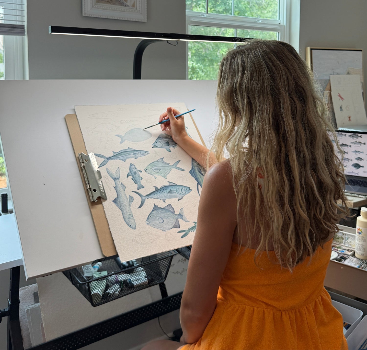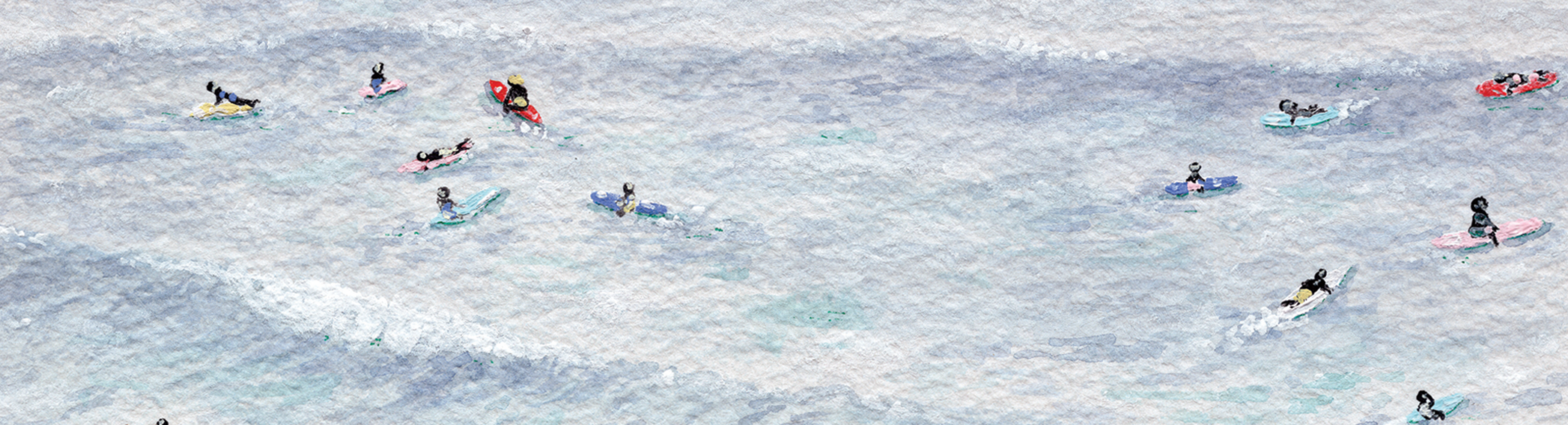 Elyse is a watercolor artist known for her whimsical, coastal, soft-hued style. Inspired by travel and the beauty of the Lowcountry, she paints landscapes, beach scenes, and architecture. Her favorite piece, Surfer, became the muse for this pajama print, loved for its serene feel and gender-neutral design.
