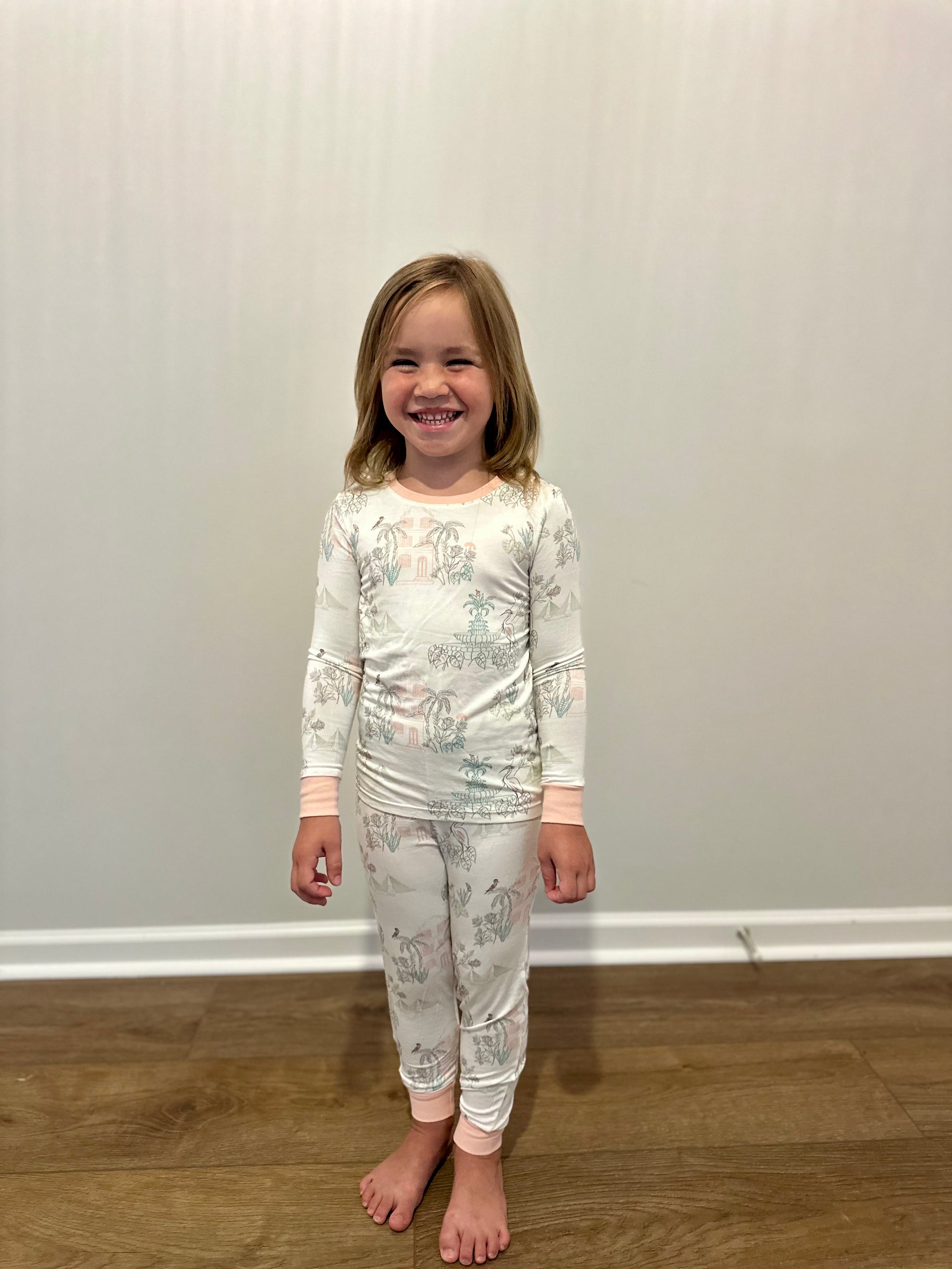 The charm of the South outlined in a pastel palette made in a smooth, soft knit. This fabric is super soft with a slight stretch so comfort is guaranteed.