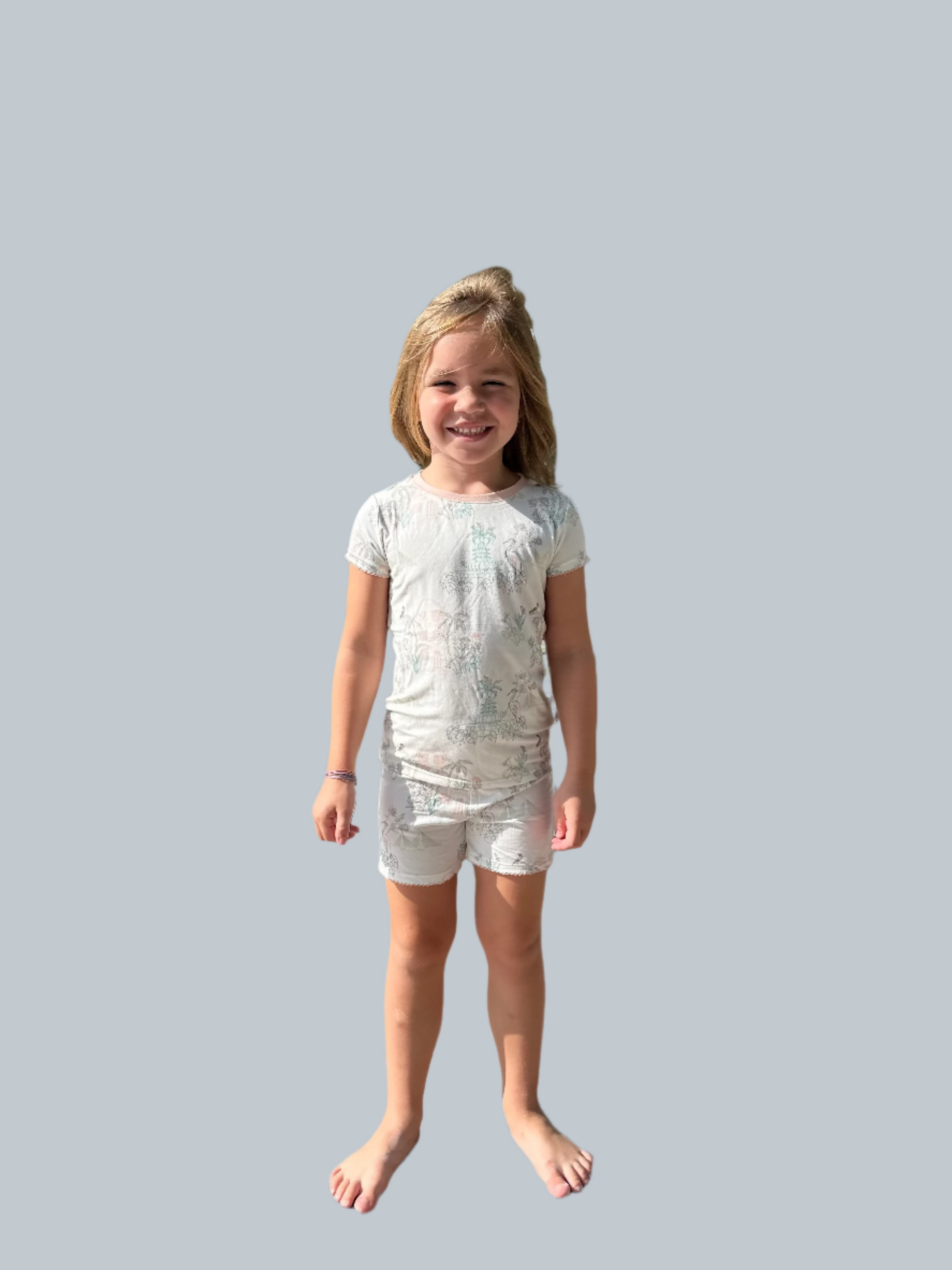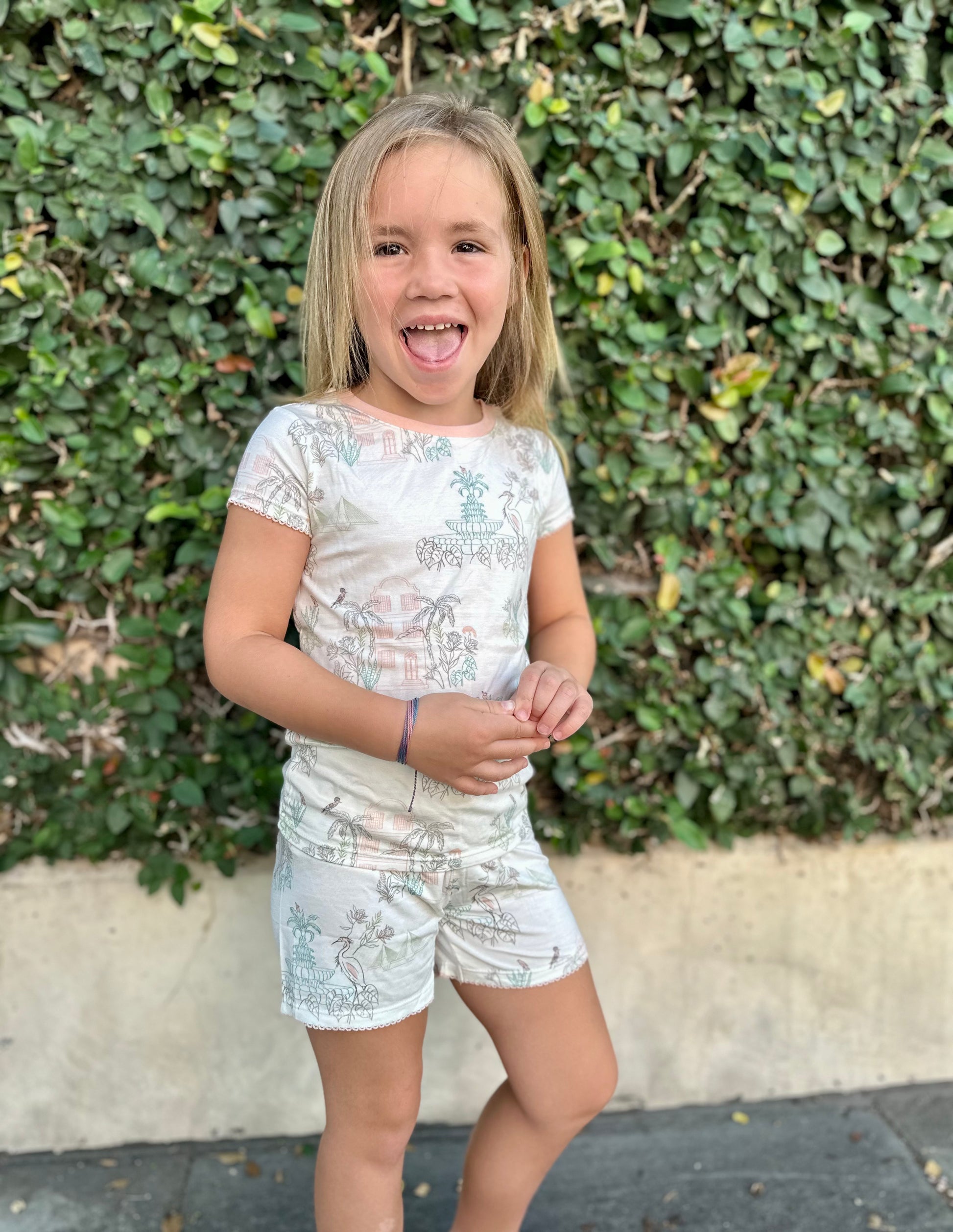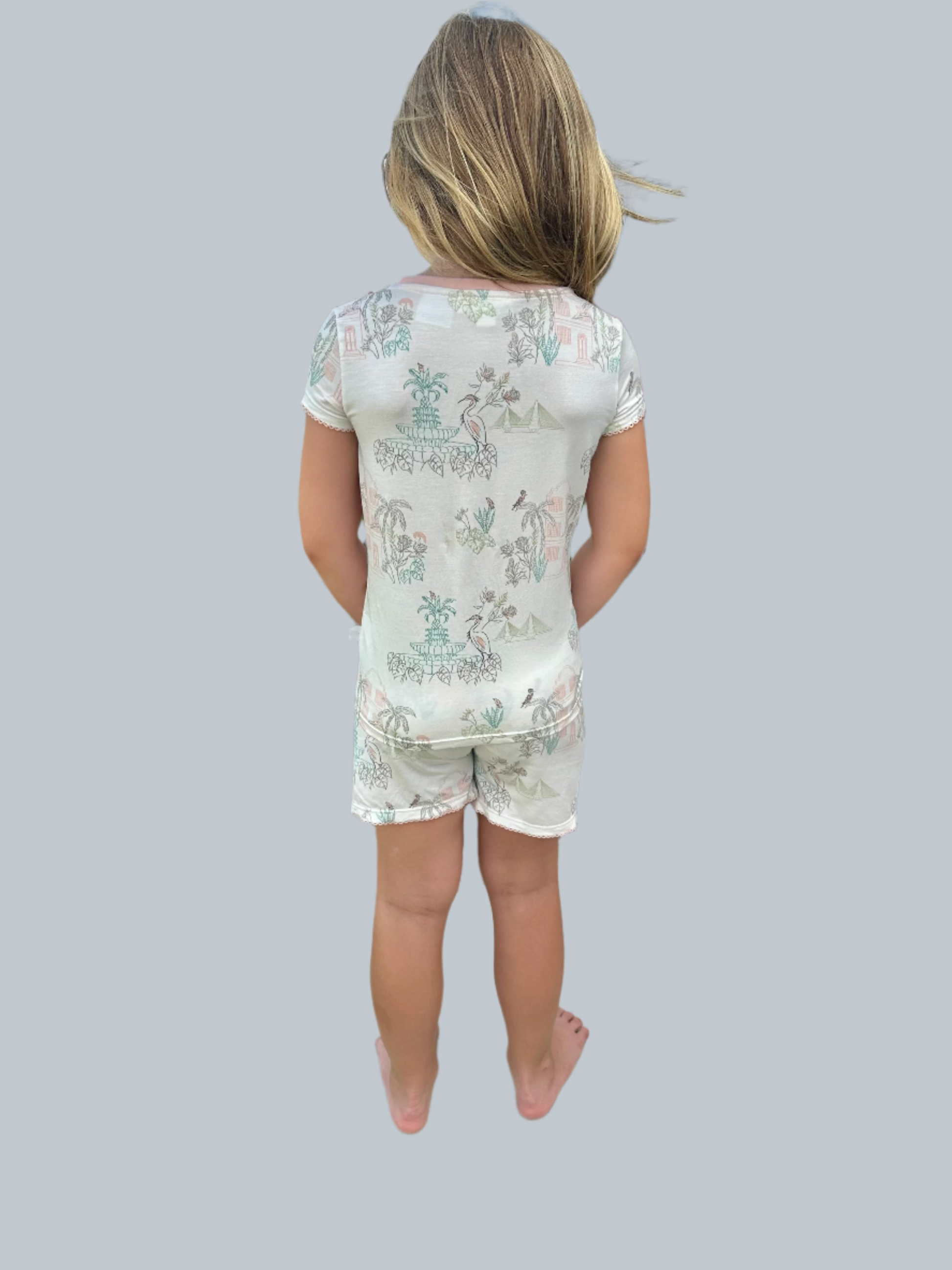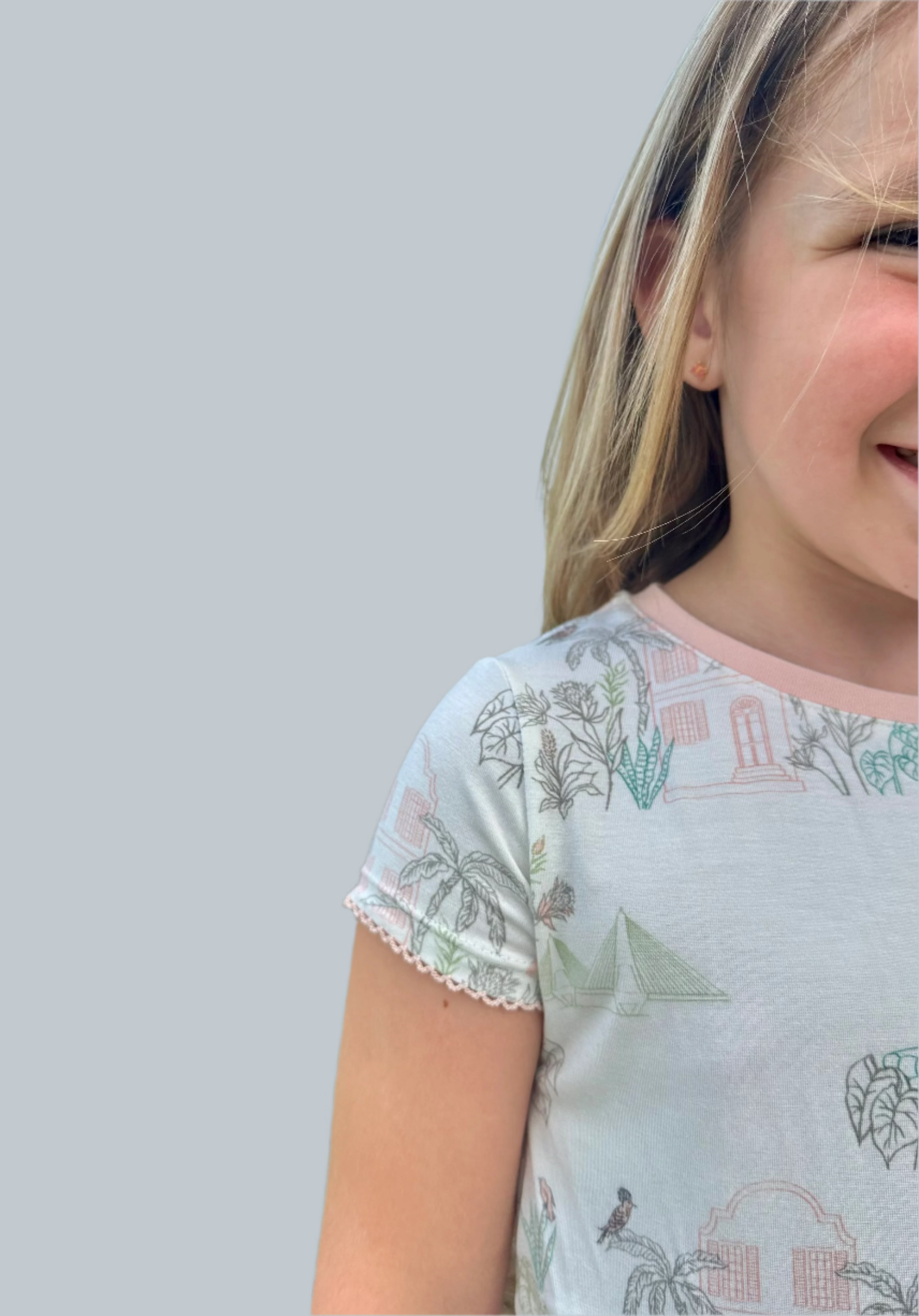The charm of the South outlined in a pastel palette made in a smooth, soft knit. This fabric is super soft with a slight stretch so comfort is guaranteed.