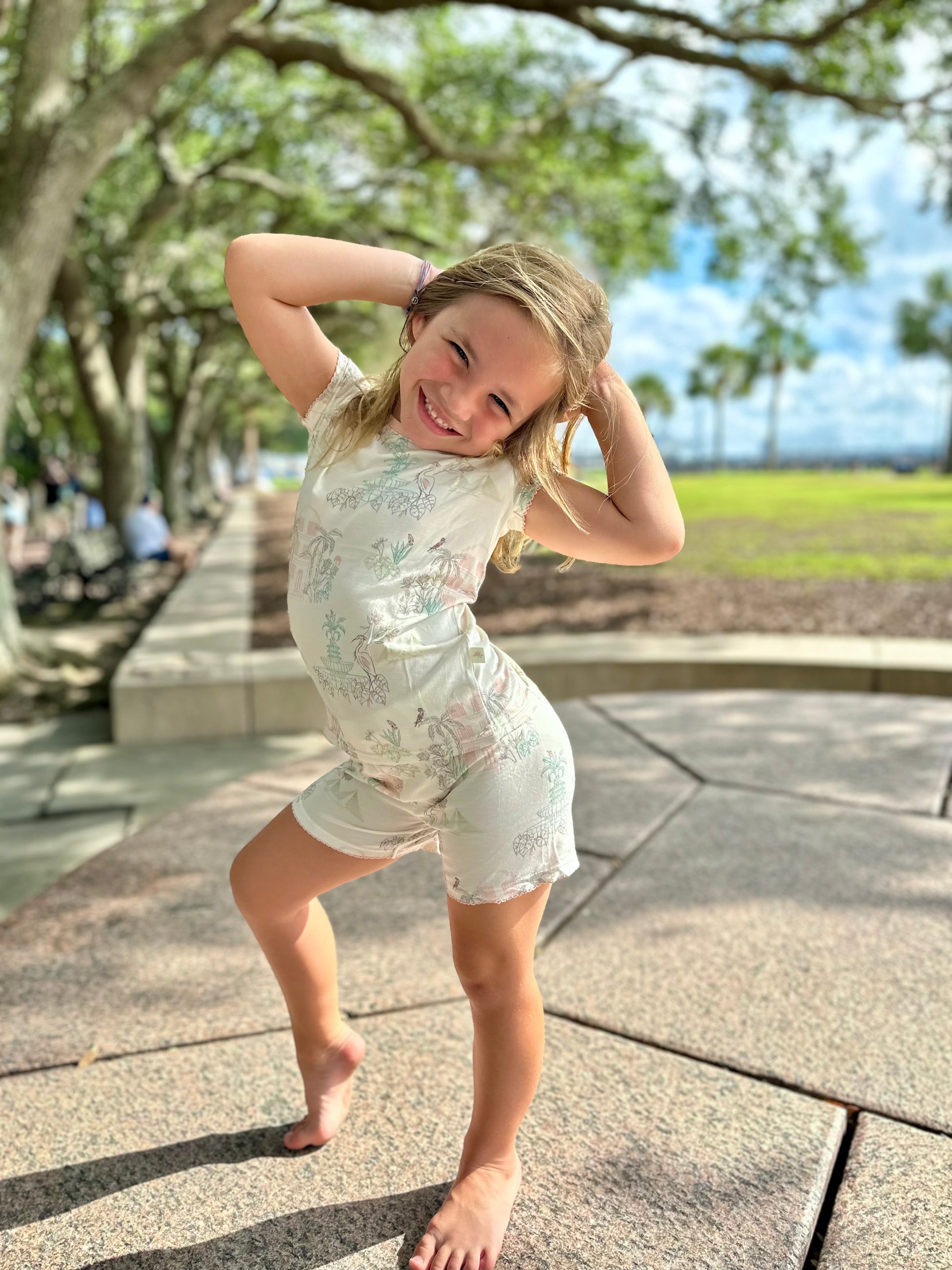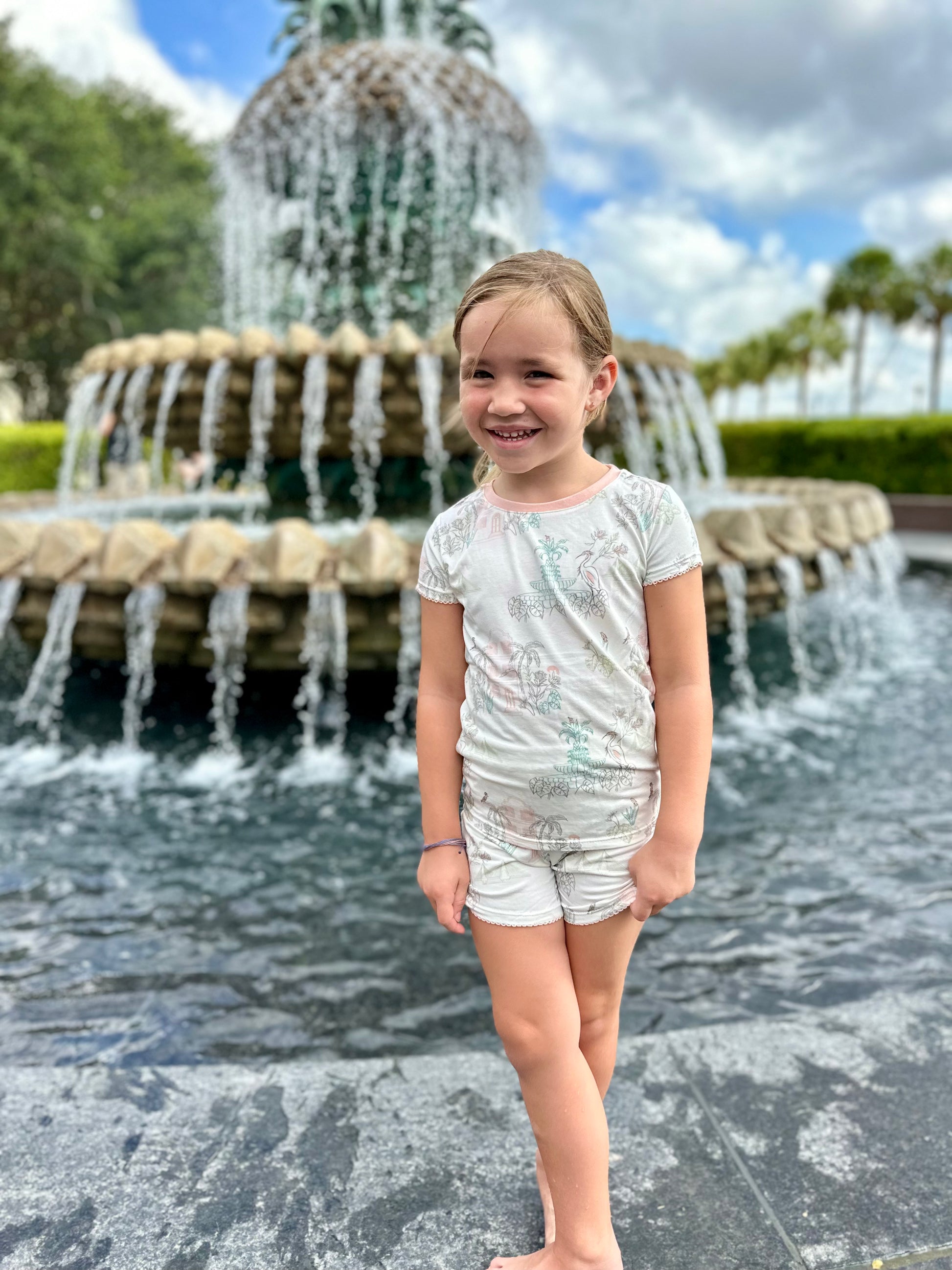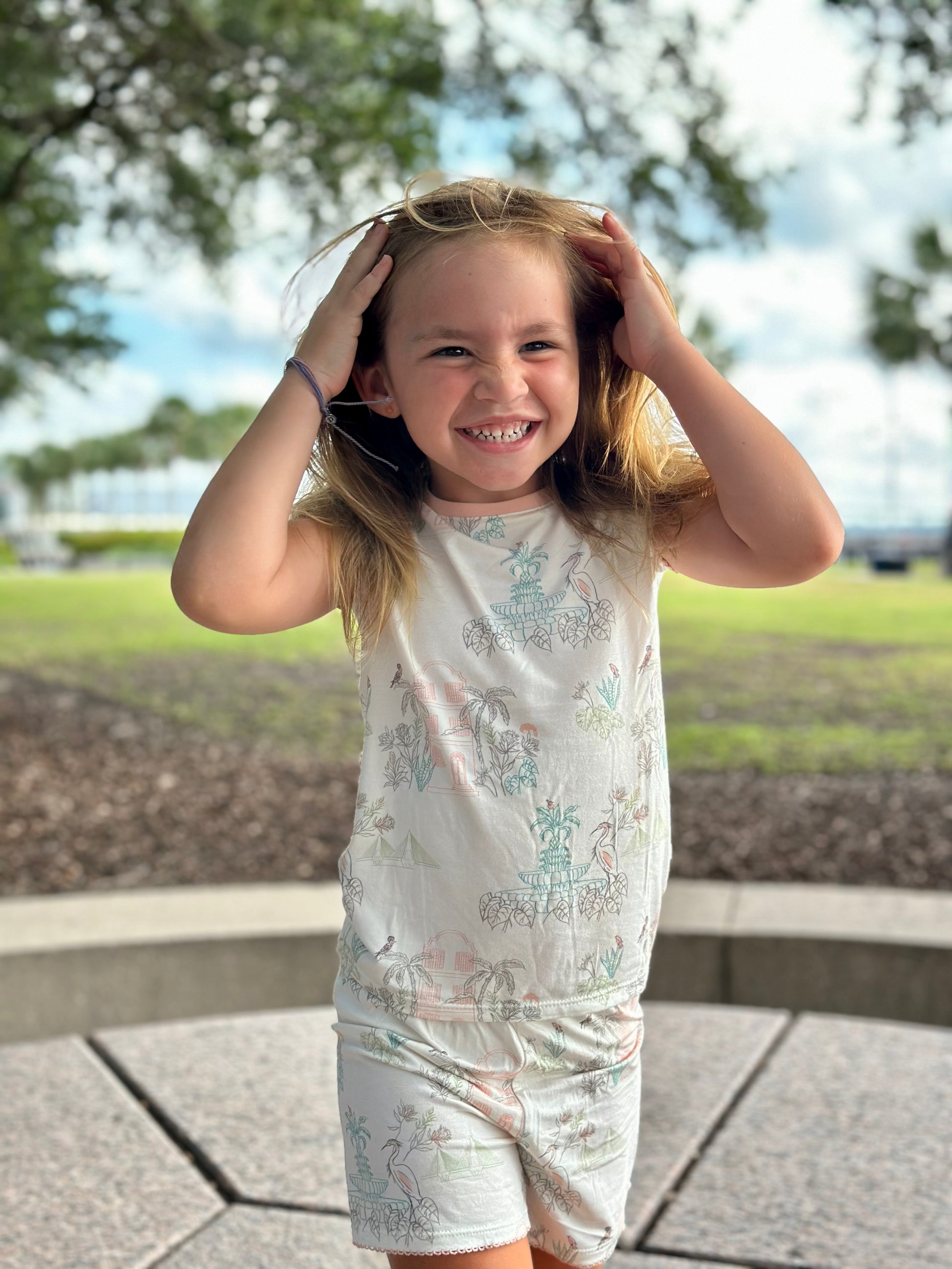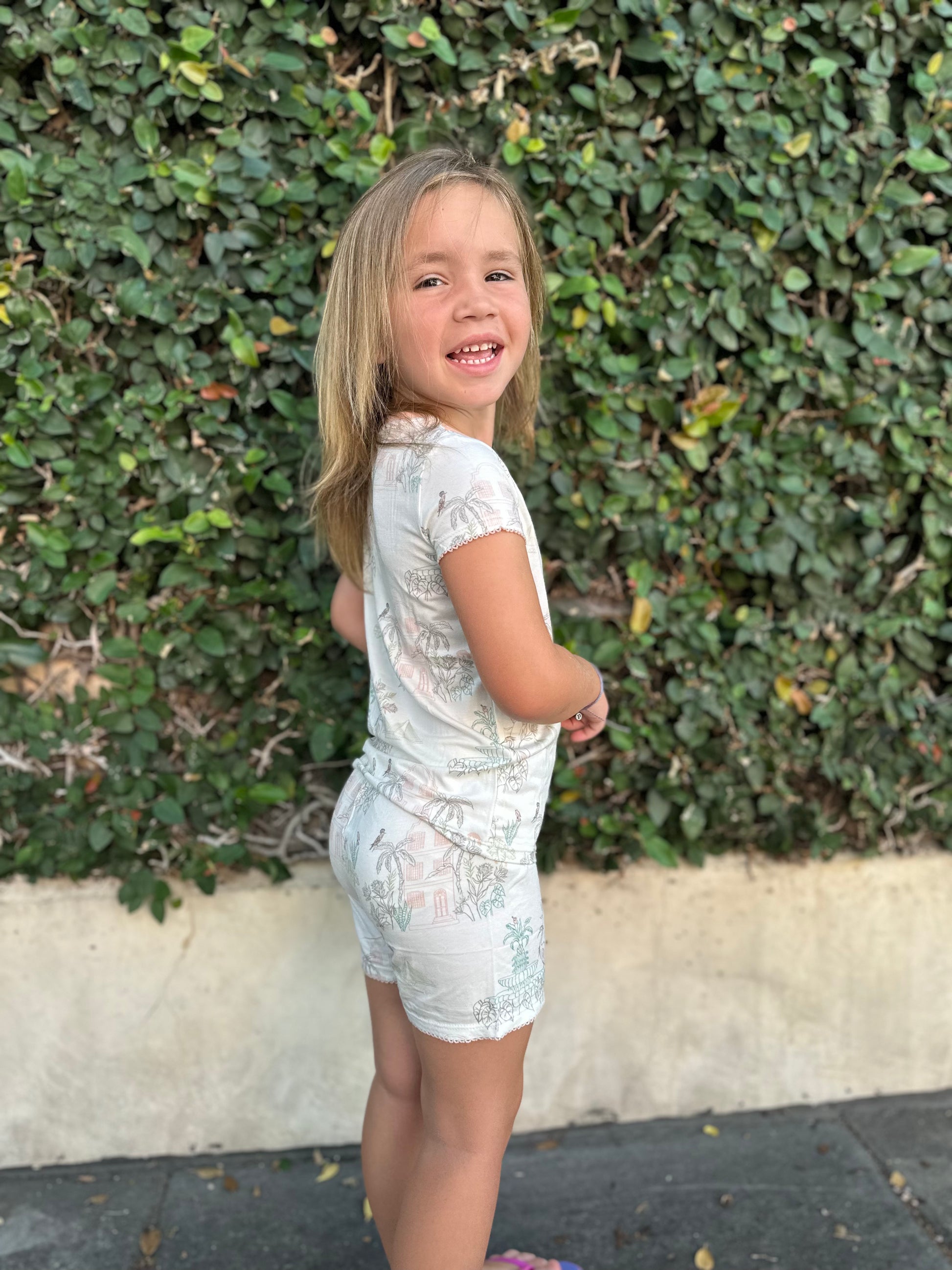 The charm of the South outlined in a pastel palette made in a smooth, soft knit. This fabric is super soft with a slight stretch so comfort is guaranteed.