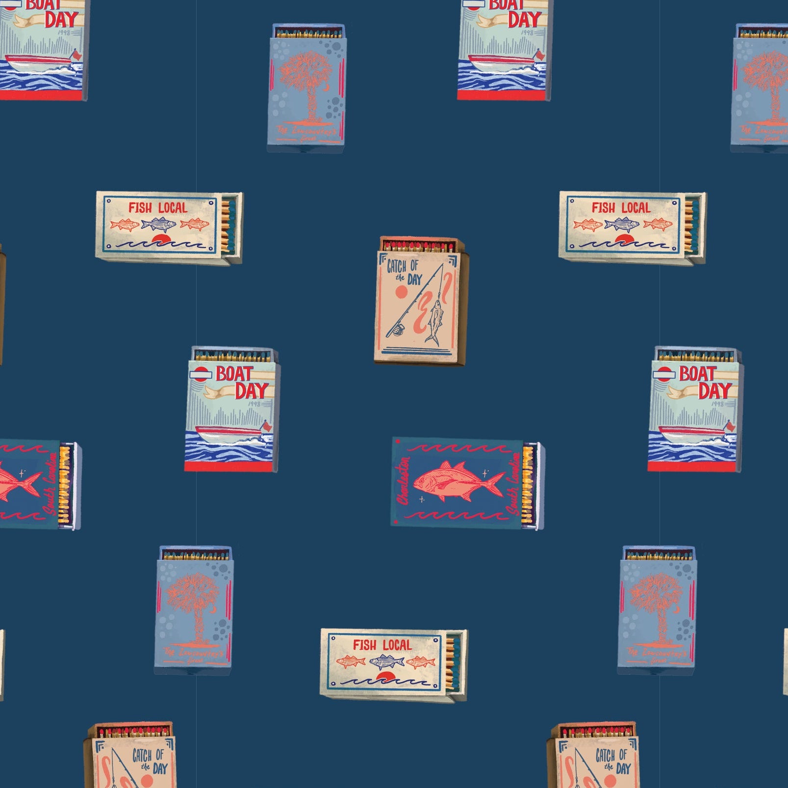 This print is is from an amazing local, graphic artist - Brooke Usery. Boating and fishing - best way to spend the day. Amazing Cotton/Tencel blend fabric.