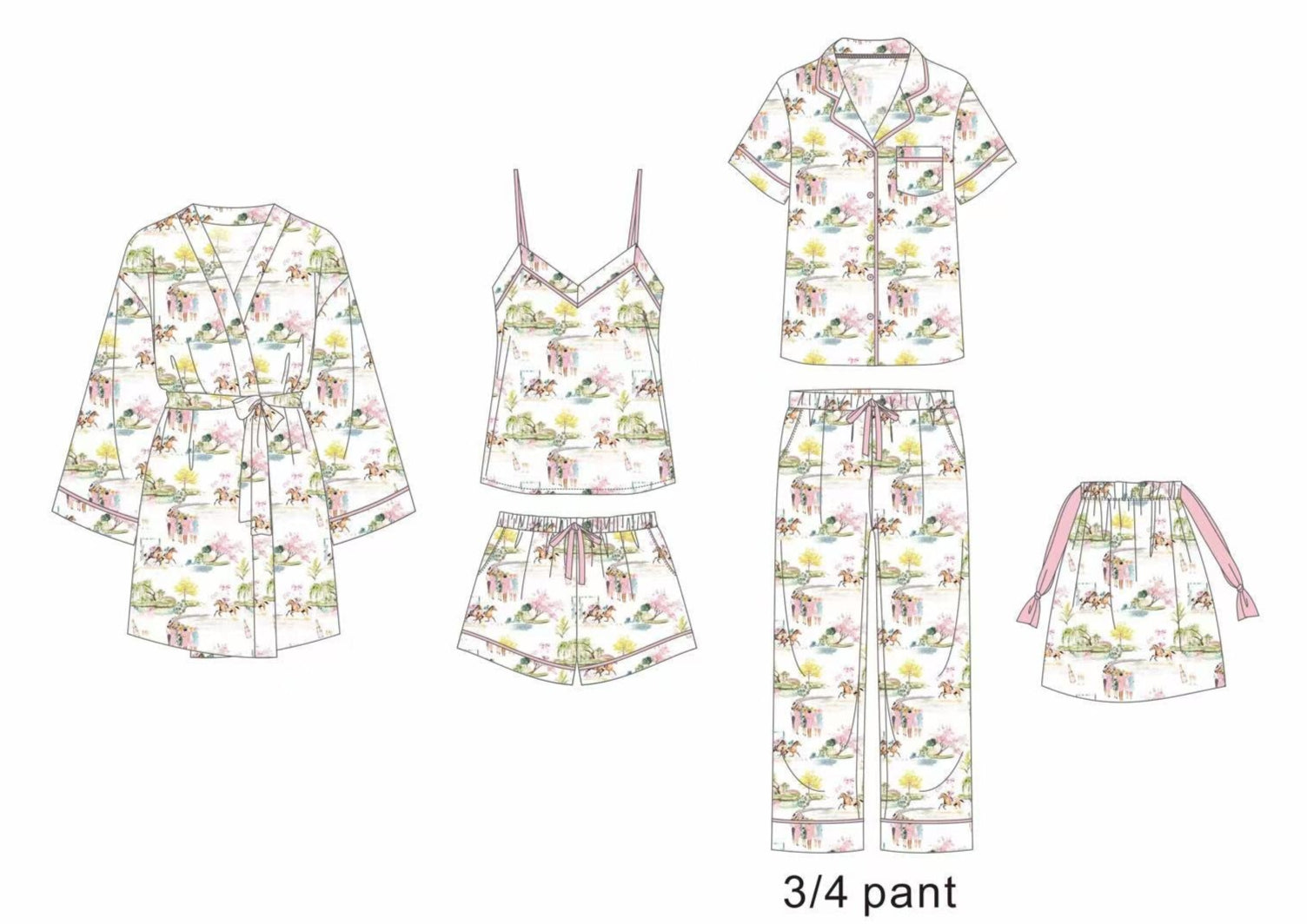 Dreamy days watching the ponies. Champagne and friends. The viscose/linen/lyocell blend has a light weight breathability suited for all weather.