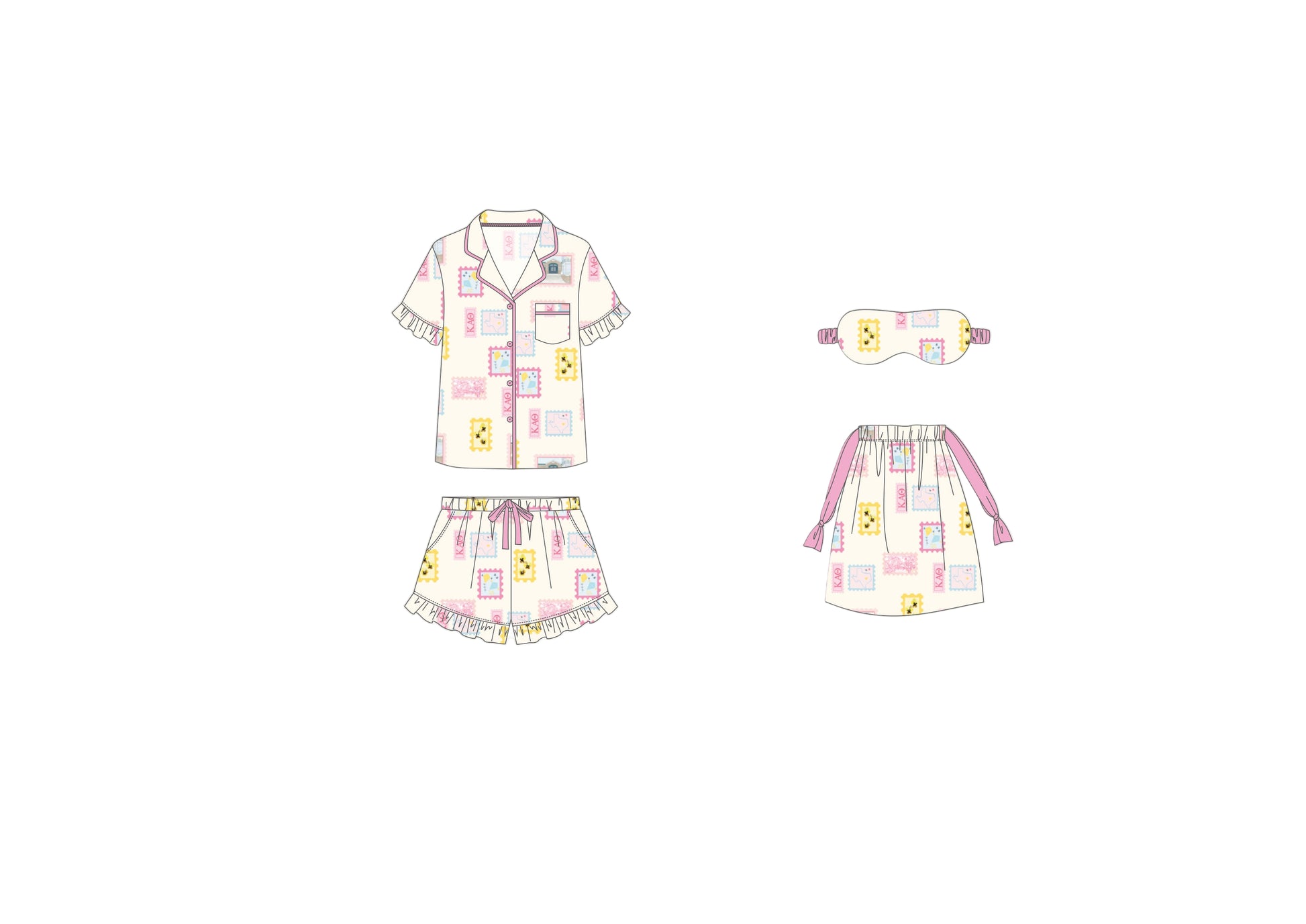 Celebrate your Kappa Alpha Theta sisterhood and Texas A&M pride with this special sorority-inspired pajama set! Featuring iconic Kappa Alpha Theta symbols and Texas A&M elements, this design honors the bond of sisterhood and your college memories.