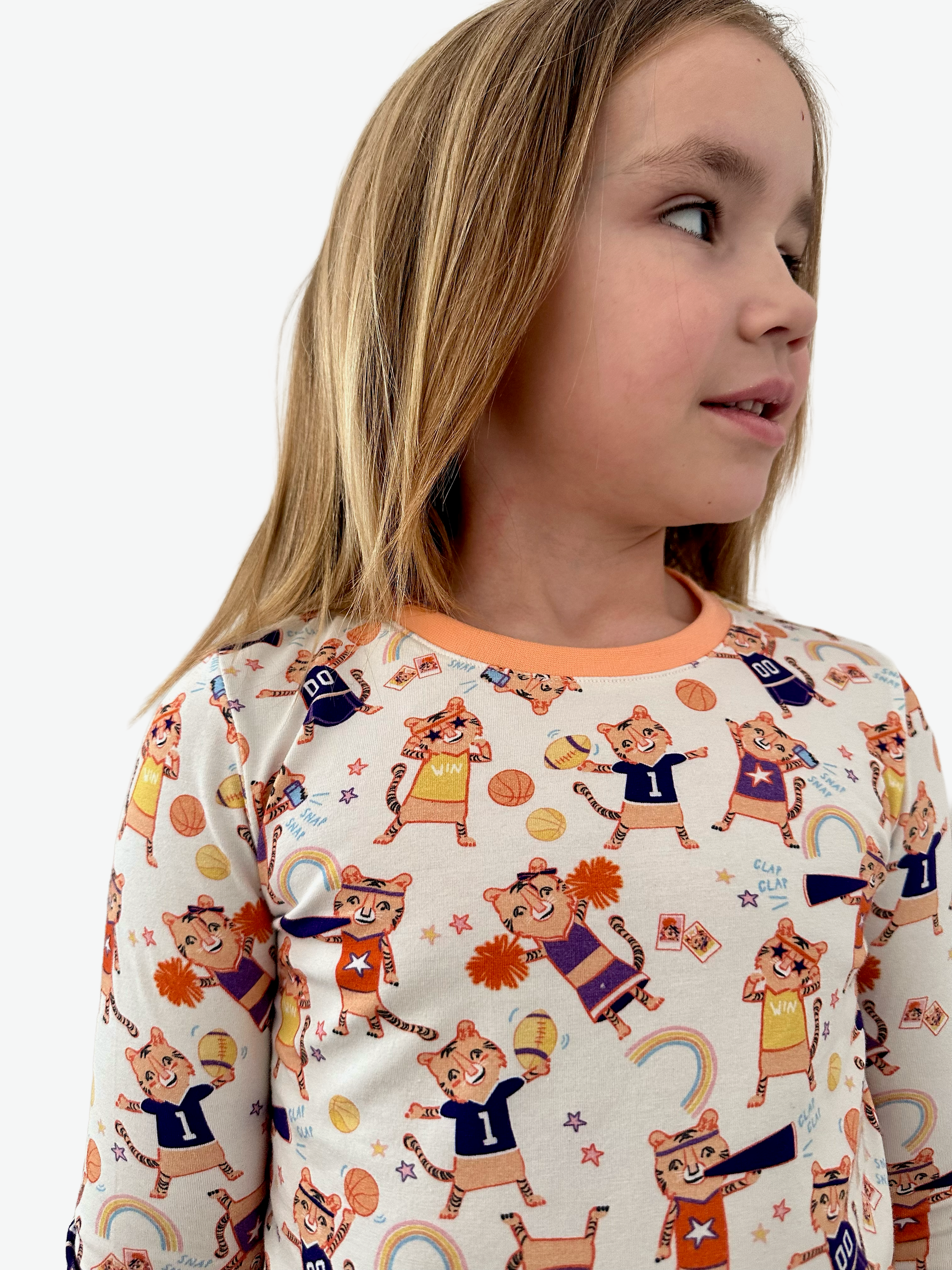 Embrace the spirit of Clemson with this premium organic cotton knit pajama short set, featuring the iconic orange and purple colorway that defines Tiger tradition. Designed for young fans who bleed orange and purple, this exclusive sleepwear collection brings Charleston design to collegiate pride.